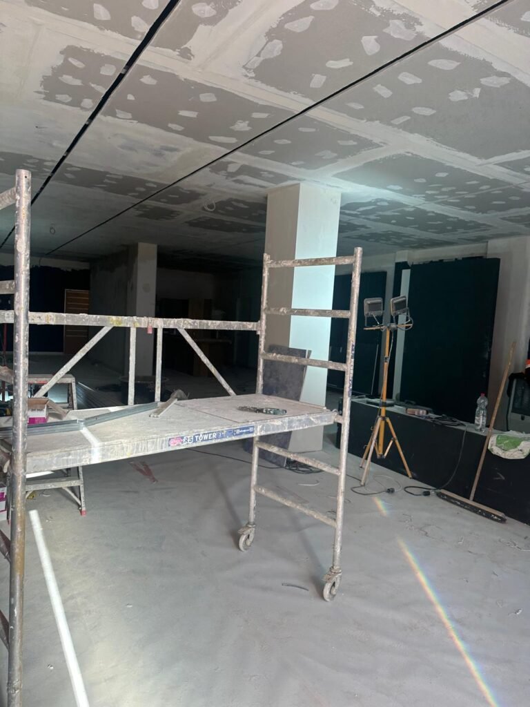 Plaatsen van een nieuw, verhoogd plafondkader in metal stud of hout