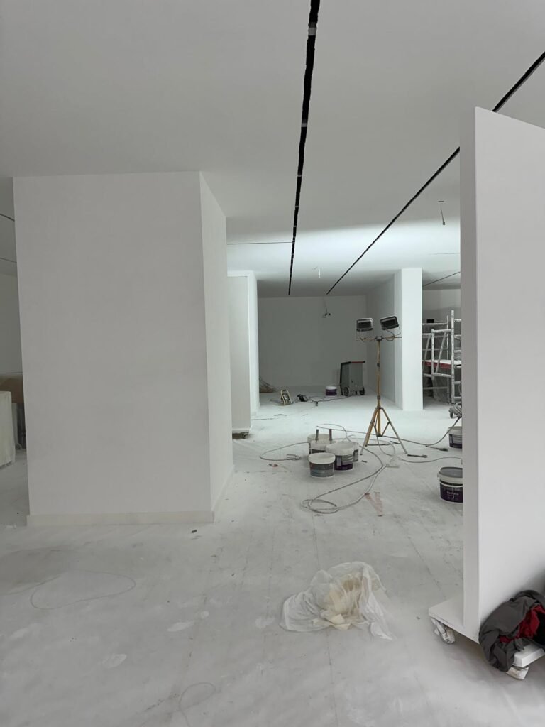 Machinale spuitapplicatie van hoogwaardige matte plafondverf